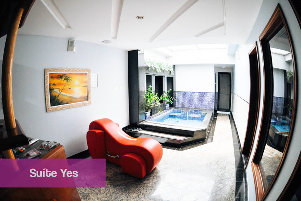 O Yes Motel apresenta várias opções de suítes super luxuosas e com decoração de extremo bom gosto, todas as suítes são totalmente equipadas e dispõem de excelente serviço de cozinha, para que vocês desfrutem de momentos inesquecíveis. Trabalhamos com a intenção de entregar aos nossos clientes um serviço de alto padrão de qualidade, por isso, o motel conta com uma infra-estrutura moderna e eficiente para o pronto atendimento de seus hóspedes.